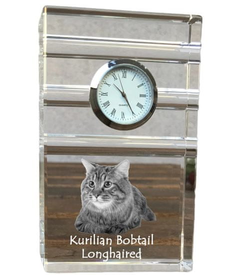 Artdog Kurilski dolgodlaki bobtail - steklena ura s fotografijo, fotografija mačke v kristalu, personalizirana stoječa ura za pisarno Art-Dog