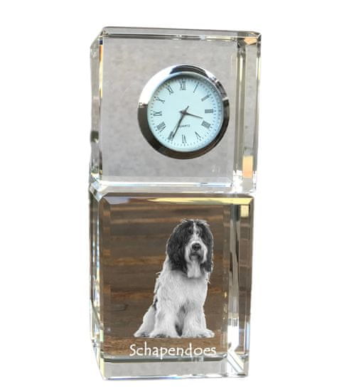 Artdog Schapendo, nizozemski ovčar - kristalna ura s fotografijo, fotografija psa v kristalu, personalizirana namizna ura Art-Dog