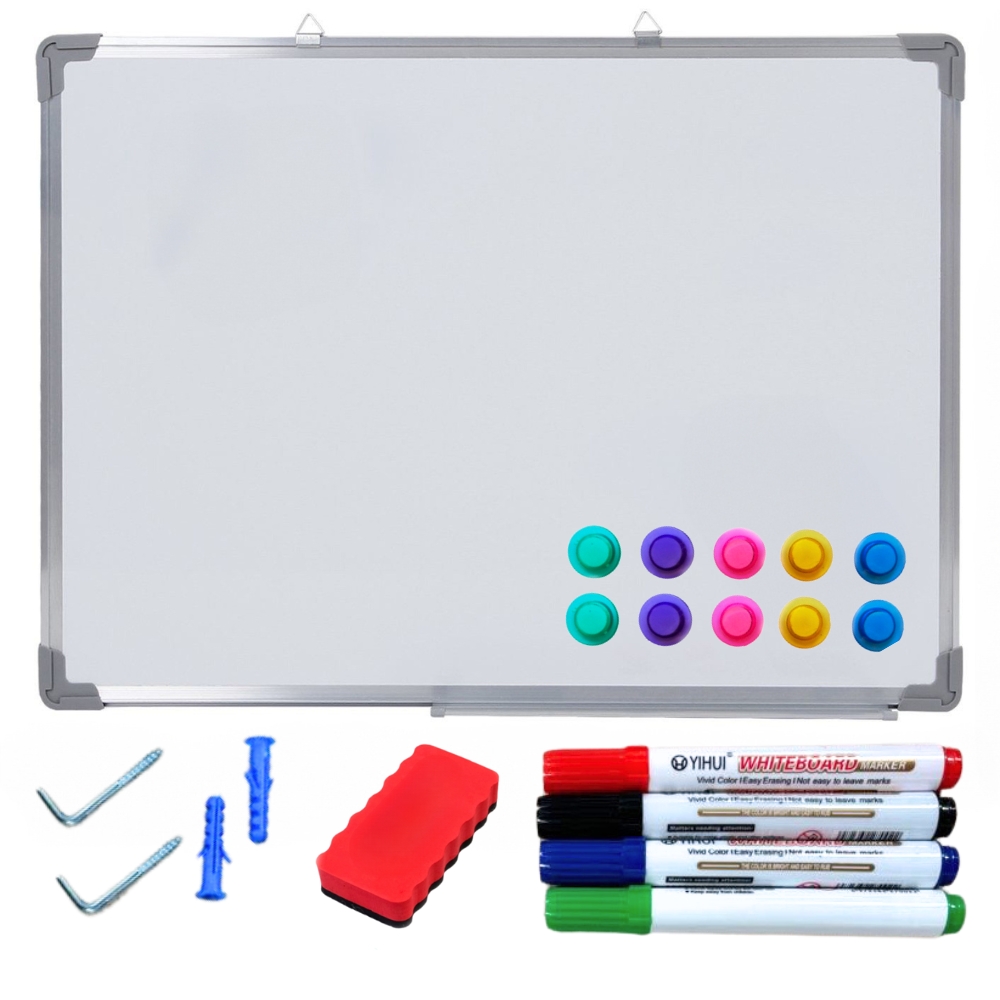 , ki bo delovala v vsaki situaciji – ne glede na to, ali ste lastnik podjetja, učitelj, starš ali pa preprosto potrebujete praktično rešitev za organizacijo vsakodnevnih opravil. Zahvaljujoč površini za suho brisanje lahko vsak dan ustvarjate nove zapiske in načrte ter jih nato preprosto izbrišete in zamenjate z novimi. Poleg tega je tabla magnetna, tako da lahko nanjo preprosto pritrdite pomembne dokumente, fotografije ali druge materiale s pomočjo pisanih magnetov (priloženi kompletu). ❇️IDEALNO ZA UČENJE, ZABAVO IN PREDSTAVITVE Magnetna tabla za suho brisanje 150×100 cm je odlično orodje za vse, ki cenijo red in funkcionalnost. V pisarni bo