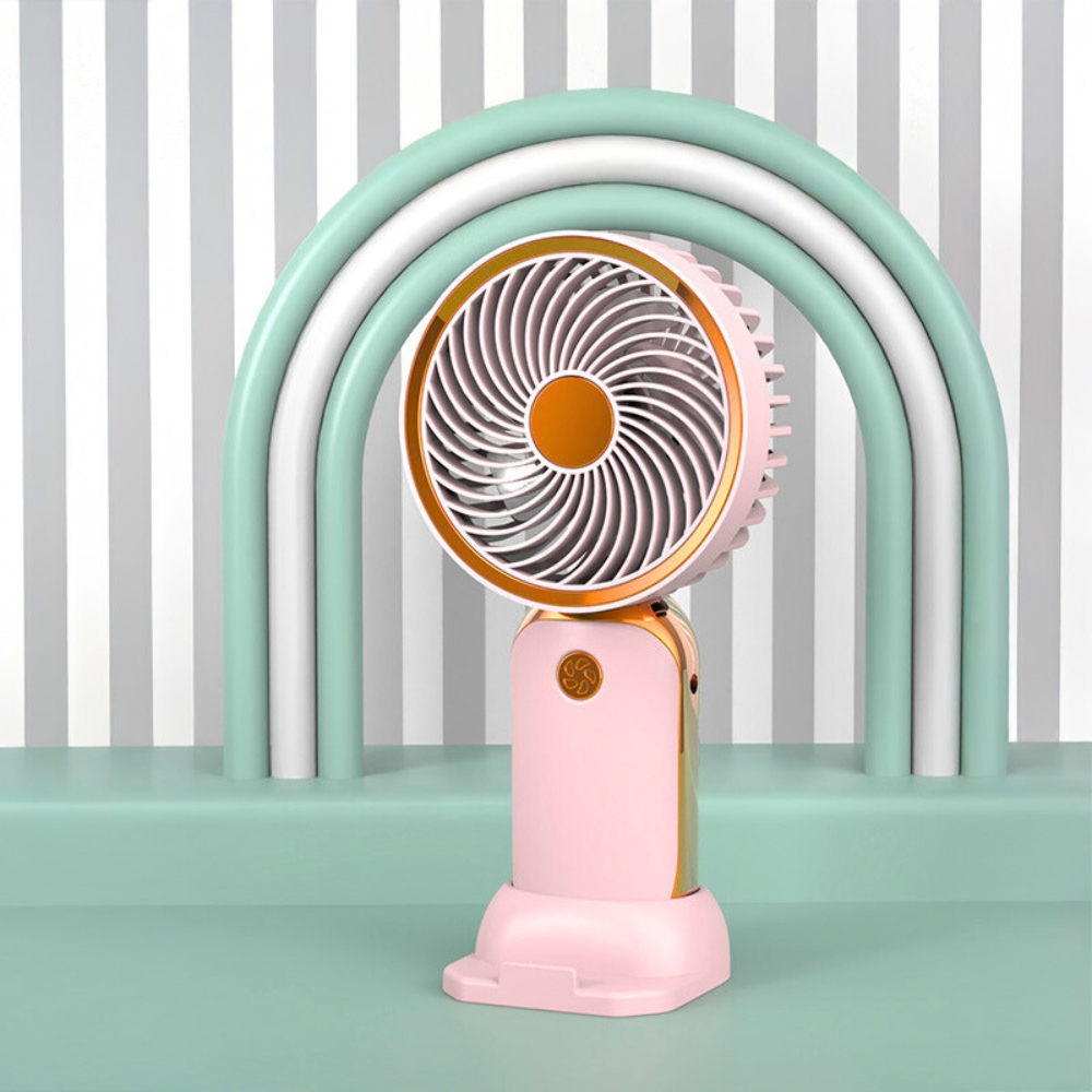 Naš izdelek ni le ventilator , temveč večnamenska naprava, ki zagotavlja udobje in priročnost pri vsakodnevni uporabi. Roza, elegantna oblika z zlatimi elementi ga naredi ne le praktičnega , temveč tudi eleganten dodatek vaši mizi. Zahvaljujoč tihemu delovanju, polnjenju prek USB-ja in vgrajenemu stojalu za telefon naš mini ventilator izpolnjuje vsa pričakovanja sodobnega uporabnika. ✅PREDNOSTI NAŠEGA IZDELKA