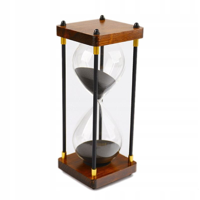 Ta peščena ura z lesenim podstavkom in kovinskimi robovi je čudovita dekoracija, ki bo dodala čar vsaki sobi. Zaradi svojega klasičnega, vintage sloga ni le eleganten element notranje opreme, temveč tudi praktično orodje za upravljanje s časom.