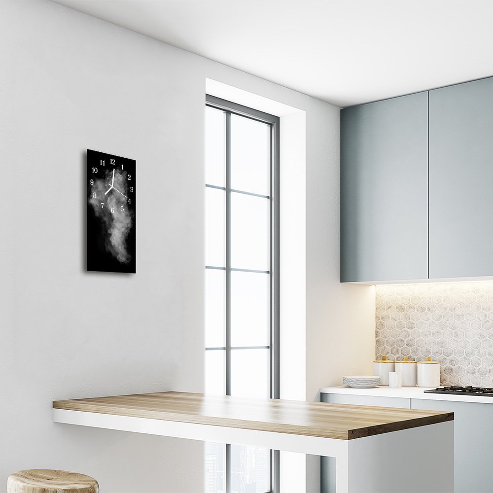 tulup.si Steklena navpična ura Dim abstrakcija črno in belo 30x60 cm Bele kazalke