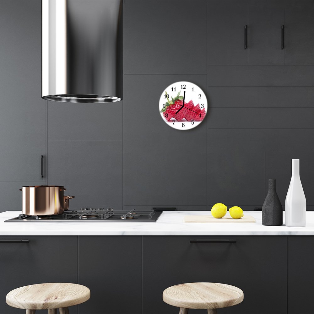 tulup.si Steklena okrogla ura Strawberry fi 30 cm Črne kazalke