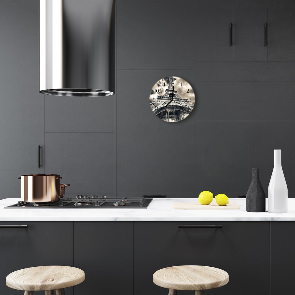 tulup.si Steklena okrogla ura Eifflov stolp fi 30 cm Črne kazalke
