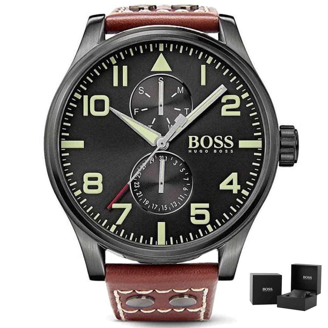 Moška ročna ura Hugo Boss Aeroliner Maxx 1513079 je s 50 mm premera številčnice največja Hugo Boss ura. To uro odlikuje eleganten in zelo udoben usnjeni pašček, ki se lepo prilega zapestju. Je ročna ura, ki združuje robustnost s prefinjenim slogom, izraža samozavesti, tako kot moški, ki jo nosi.