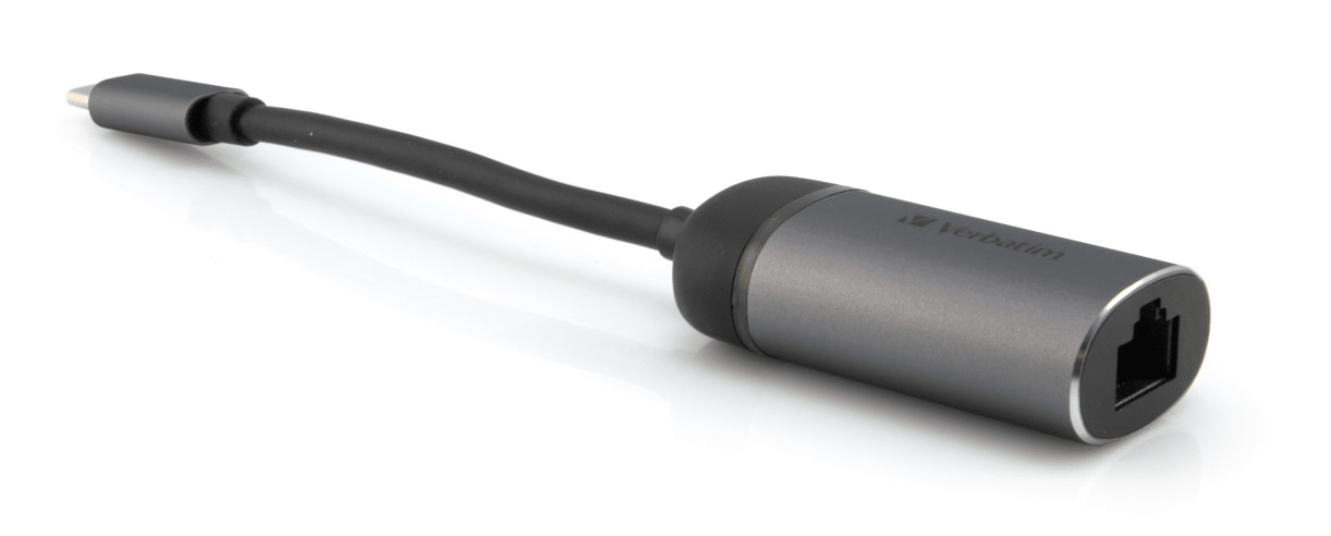 Poseben adapter Verbatim vsem napravam, ki nimajo vgrajenega LAN/RJ-45 priključka omogoča uporabo le tega. Adapter priključite preko USB Type-C priključka, nanj pa povežite UTP kabel in se povežite v omrežje.