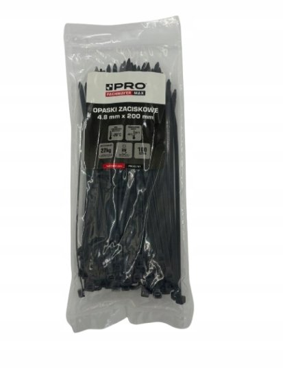 VEZICE ZA KABELE 4,8 mm x 200 mm 100 kosov PRO FACHMAYER ⚙️ OPIS IZDELKA: ✅ Izdelane iz najlona 66 ✅ Odporne na UV žarke ✅ Nosilnost 22 kg (220 N) ✅ Delovna temperatura: –40℃~85℃ ✅ Najnižja temperatura vgradnje 0℃ ✅ Stopnja samougasljivosti UL 94V.2 ✅ Za notranjo in zunanjo uporabo