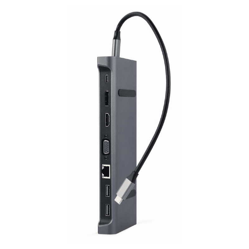 CABLEXPERT Adapter USB-C 9-v-1 3xUSB, HDMI, DP, VGA, PD, LAN, audio