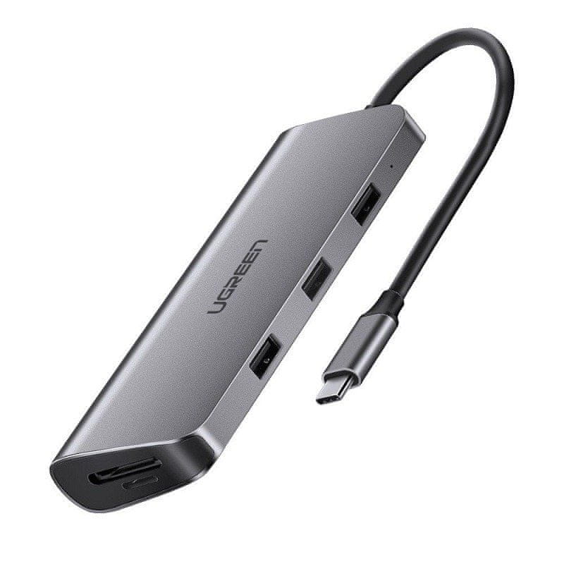 Za zagotovitev standarda za delo z napravami nam adapter uGreen 8v1 zagotavlja ohranjen dostop do priključka USB-C, ki ga uporablja. Tako nam ni treba skrbeti, da bi izgubili enega od izjemno dragocenih priključkov USB-C, saj je dostop ohranjen. Priključek omogoča prenos podatkov in deluje kot priključek za polnjenje.1 x bralnik kartic SD – standardna rešitev, ki se uporablja z večnamenskimi adapterji. Bralnik kartic omogoča zapisovanje podatkov na kartico formata SD in z nje. To je izjemno uporabna funkcija za fotografe in snemalce, katerih delo je zapisano na takih pomnilniških karticah.1 x bralnik kartic microSD – Tako kot bralnik kartic SD tudi ta reža omogoča branje in pisanje na pomnilniško kartico in z nje, vendar tokrat v formatu micro SD. Ta vrata so zelo praktična, kadar želimo narediti kopijo datotek v telefonu. Micro SD je standardna kartica, ki se uporablja v pametnih telefonih za shranjevanje vseh fotografij in videoposnetkov, posnetih z napravo.Specifikacije Model CM179Priključek USB-CPriključki 1× HDMI, 3× USB 3.0, 1× USB-C, 1× Ethernet (RJ-45), 1× SD, 1× Micro SD, 1× VGALočljivost slike HDMI: 4K @30 HzVGA: FullHD @60 HzNapajanje PD 5 – 20 V / 3 A (60 W)Barva SivaDimenzije 10,5 × 5 × 1,6 cmTeža 136 g