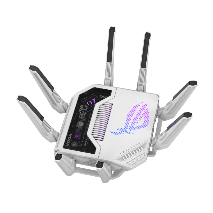 Usmerjevalnik ASUS ROG Rapture GT-BE19000AI definira prihodnost omrežij. S podporo za najnovejši standard Wi-Fi 7 (802.11be), izjemno širokimi 320 MHz kanali in tehnologijo 4096-QAM prinaša do nepredstavljivih 19.000 Mbps skupne pasovne širine za igranje, pretakanje in ustvarjanje.