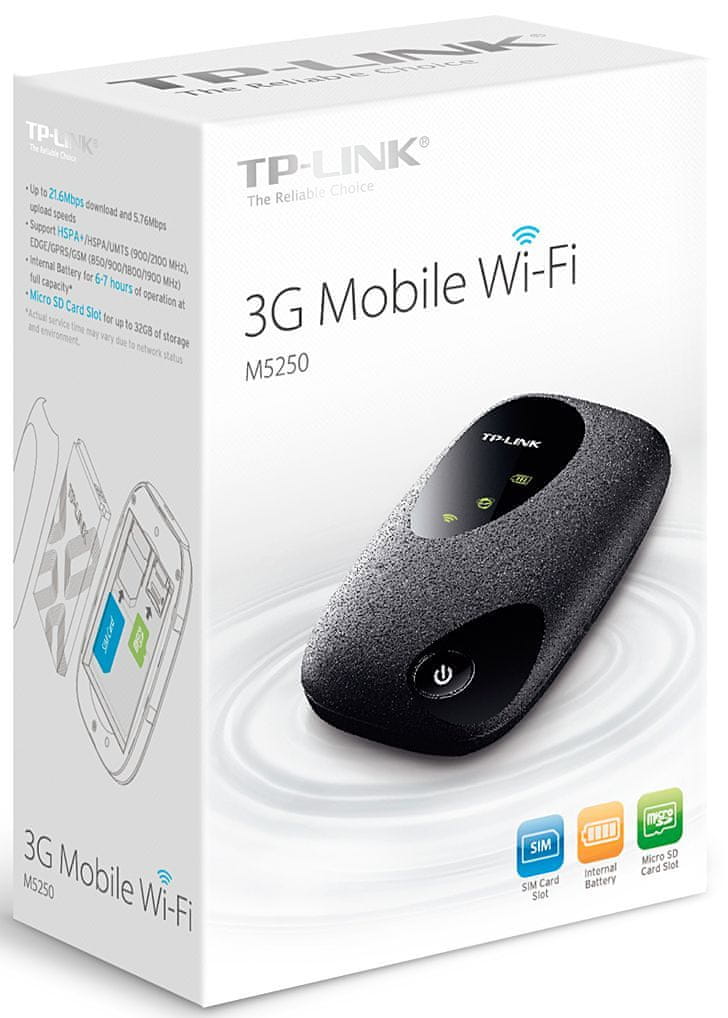 Mobilni brezžični usmerjevalnik TP-LINK M5250 je namenjen deljenju brezžične 3G povezave do 10. uporabnikom. Vgrajen ima 3G modem, s katerim boste hitro in enostavno lahko postavili kar svojo Wi-Fi dostopno točko z vstavitvijo 3G SIM kartice. Celoten opis