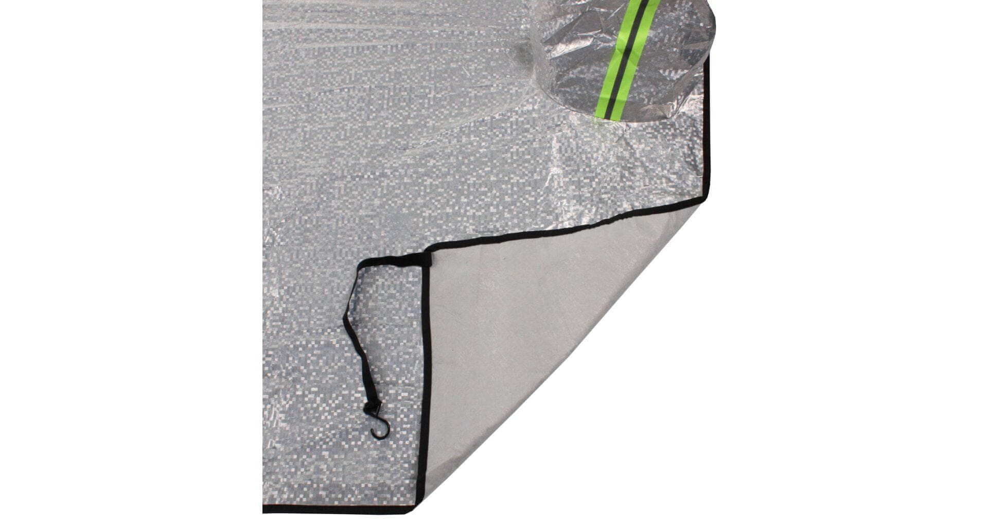 Praktična zaščita vetrobranskega stekla bi morala biti del standardne opreme izkušenega voznika. Senčilo za ogledalo lahko uporabljate v vseh letnih časih. Pozimi kot zaščito pred zmrzaljo, poleti pa kot zaščito pred UV-žarki, da preprečite pregrevanje notranjosti avtomobila. Zaslon velikosti 200 × 143 cm je izdelan iz tanke aluminijaste folije, netkanega blaga in bombaža. Na avtomobil se pritrdi tako, da ga namestite na vetrobransko steklo in ga z gumijastimi trakovi s kavlji pritrdite na vrata in dno avtomobila. Zaradi večje velikosti lahko senčilo uporabljate na različnih vrstah vozil. Pri manjših avtomobilih ščitnik ne pokriva le stekla, temveč tudi del karoserije. Parametri: – širina x višina: 200 × 143 cm – teža: približno 450 g – velikost pokrovov za ogledalo 33 × 26 cm, položaj: na straneh na sredini vizirja – pritrditev: 2 x gumijasta kljuka s kavljem dolžine 52 cm, 2 x gumijasta kljuka s kavljem dolžine 35 cm – material: aluminijasta folija, netkani material, bombaž