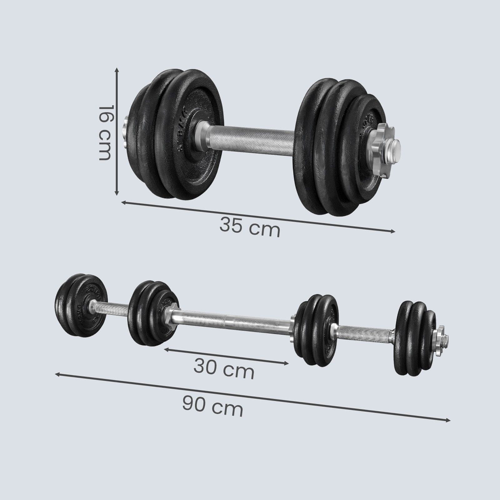 Songmics Nastavljiv komplet uteži iz plastike s kovinskim spojnikom 35x14 cm črne barve