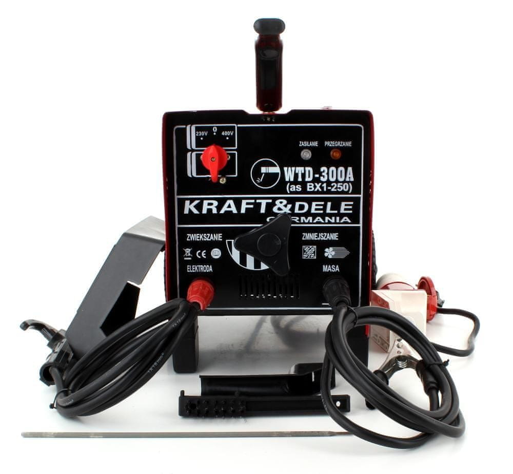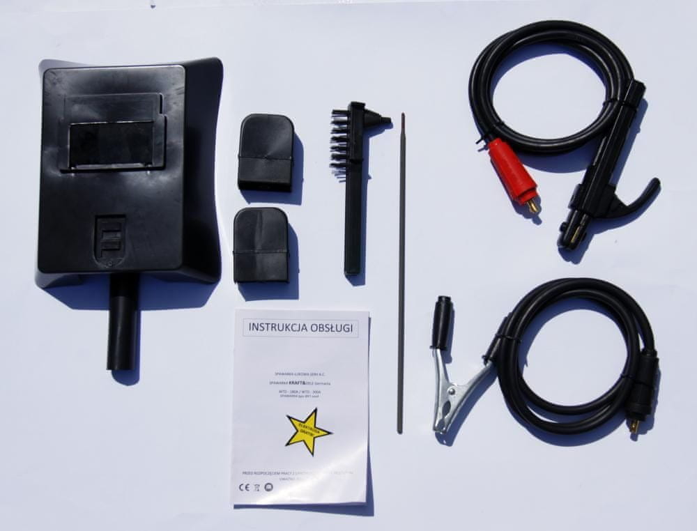 | Sestava kompleta: • Varilec transformatorjev Kraft&Dele • Varilni kabel z držalom • Ozemljitveni kabel z držalom • 400V na 230V adapter • Krtača, kladivo, majhno kladivo • Ergonomski zgornji ročaj • Kolesa Transport • Poljski uporabniški priročnik |