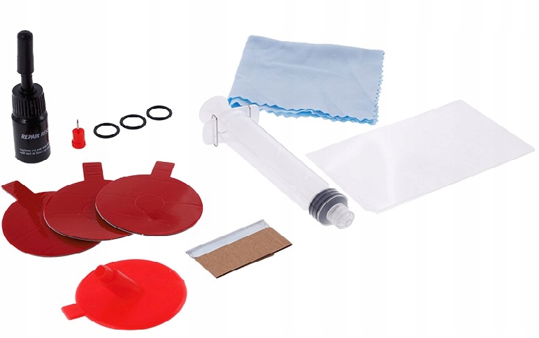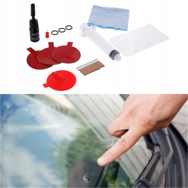 Komplet vsebuje vse, kar je potrebno za popravilo avtomobilskih stekel.