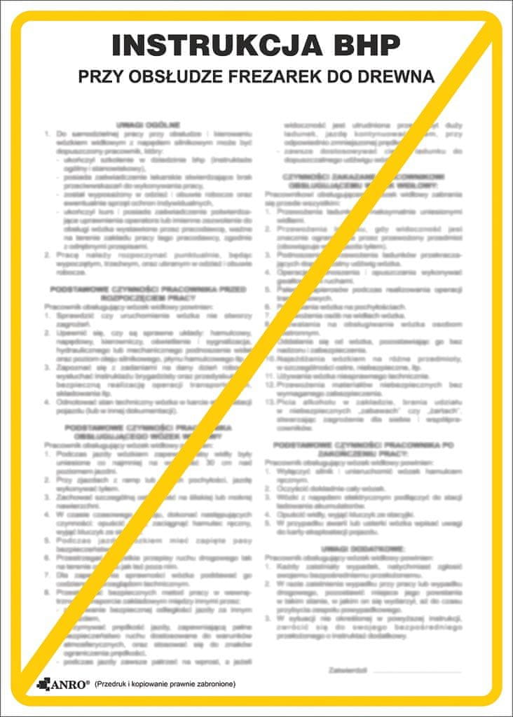 Priročnik za varnost in zdravje pri delu za lesnoobdelovalne rezkalne stroje je pomemben dokument za delavce, ki delajo s tem strojem. Ta PVC znak velikosti 250 × 350 mm vas opominja, da morate pri delu z rezkalnim strojem upoštevati varnostna pravila. Priročnik za varnost in zdravje pri delu vsebuje informacije o varni uporabi, delovanju in vzdrževanju stroja ter navodila, kaj storiti v primeru okvare ali nesreče. Zagotavljanje ustrezne zaščite zaposlenih je pomemben element varnosti na delovnem mestu.