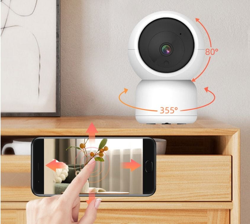 - Upravljanje premikanja kamere: 0°-355° vodoravno in 0°-80° navpično