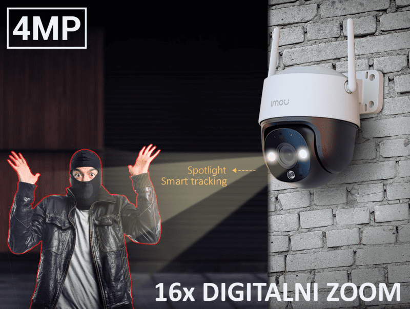 – Funkcionalnosti kamere vključujejo zaznavanje gibanja, zaznavanje človeka, pametno sledenje ter aktivno odvračanje s pomočjo vgrajene LED osvetlitve.