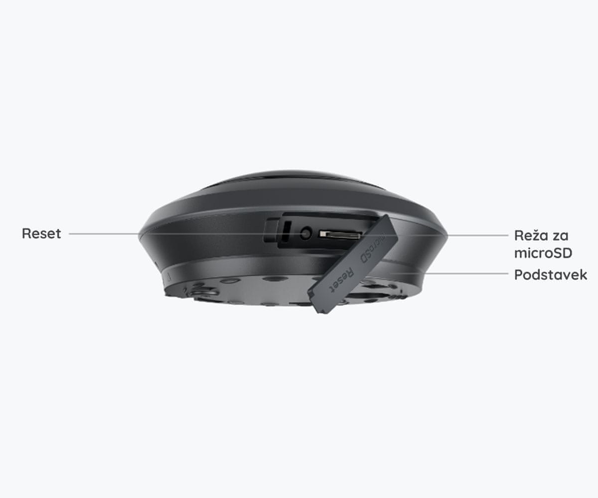 Kamero lahko namestite kamor želite! Izjemen kot omogoča ogled iz katerega koli kota prostora in montažo na strop, steno ali na mizo.