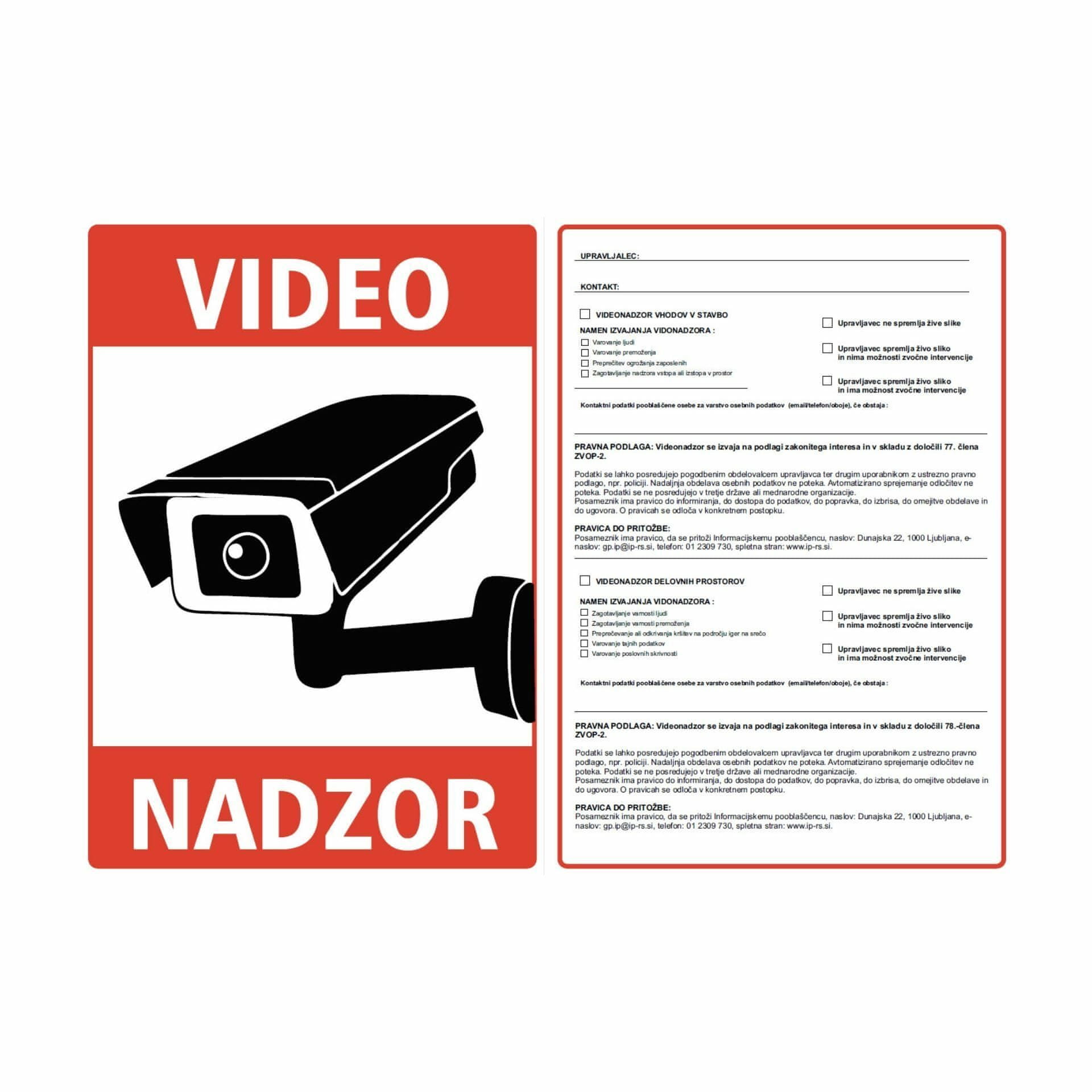 Tech Trade Nalepka "VIDEONADZOR" A5 (190x133) rdeča + 77. in 78. člen ZVOP-2
