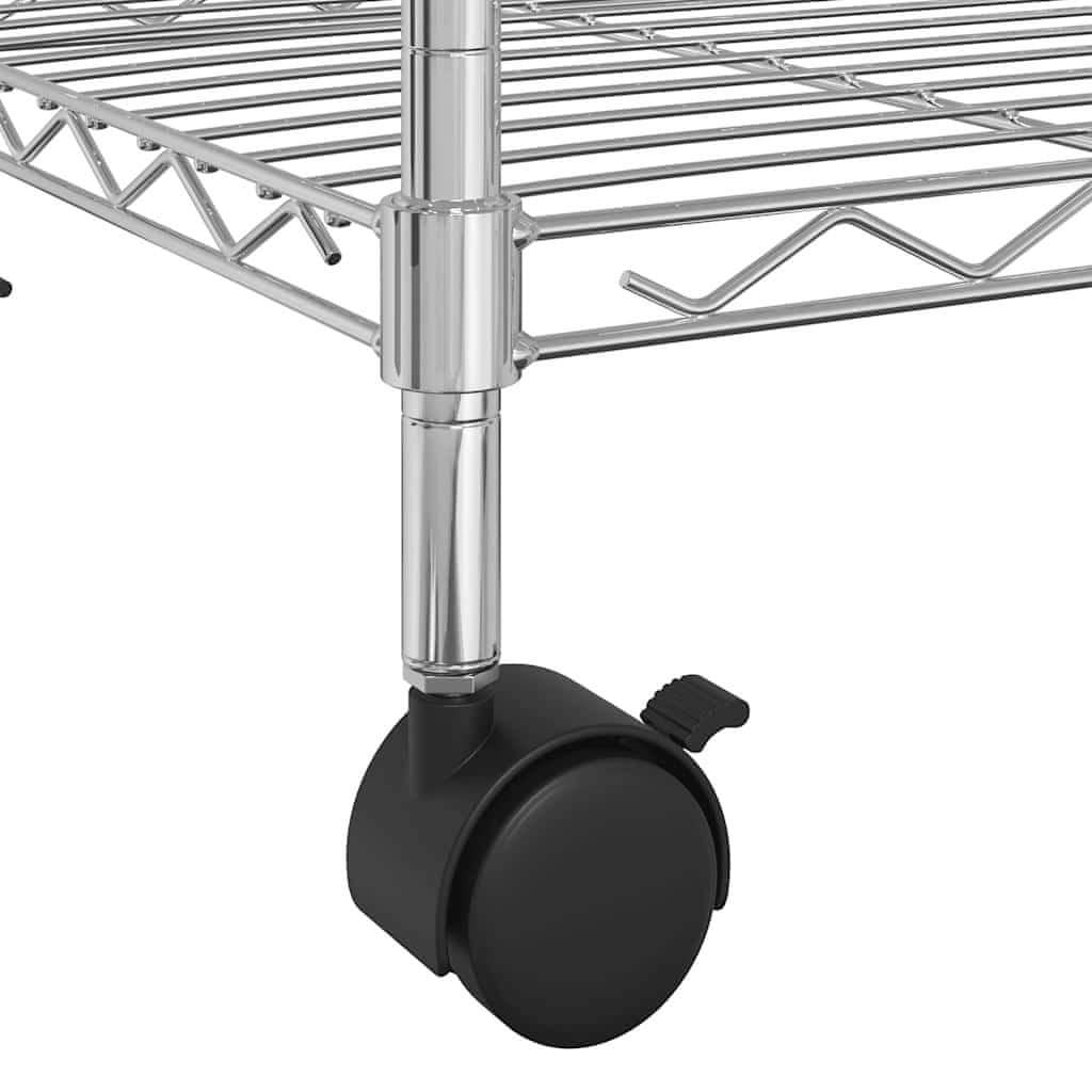 Ta organizator za shranjevanje iz kromiranega železa je izjemno vzdržljiv! Industrijski regal ima 4 kolesa za enostavno premikanje.