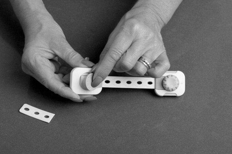 Otežuje otrokom odpiranje zaklenjenih vrat in predalov.