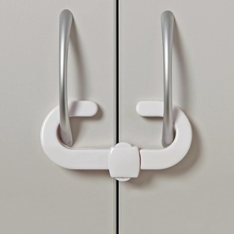 • Pomaga otrokom preprečiti odpiranje omar s potencialno nevarno vsebino v katerem koli prostoru, vključno s kuhinjo, kopalnico, pralnico, garažo in bivalnimi prostori.