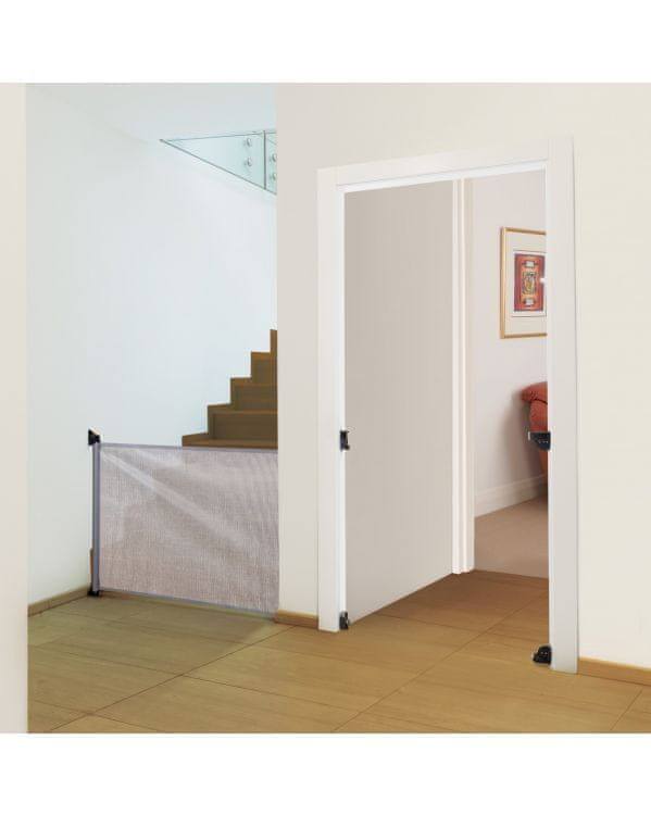Ko se vrata odprejo, se popolnoma umaknejo z vaše poti in tako omogočijo hiter in enostaven prehod. Ker se celotna vrata zložijo (zvijejo), ko so odprta, na tleh ni nobenih letvic, katere bi morali prestopati, kar zmanjša nevarnost spotikanja. Zložljiva notranja/zunanja varnostna vrata Dreambaby® so preprosta zaščita vaše družine.