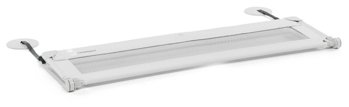 Varovalo je idealno tudi za potovanja, na dopustu, saj se ga lahko enostavno zloži in shrani v priloženi praktični vrečki. Zaradi jeklenega ogrodja je varovalo stabilno.