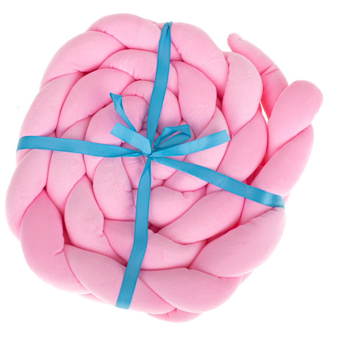 Ikonka Zaščitni odbijač za otroške posteljice pleten pleten roza 8x200cm