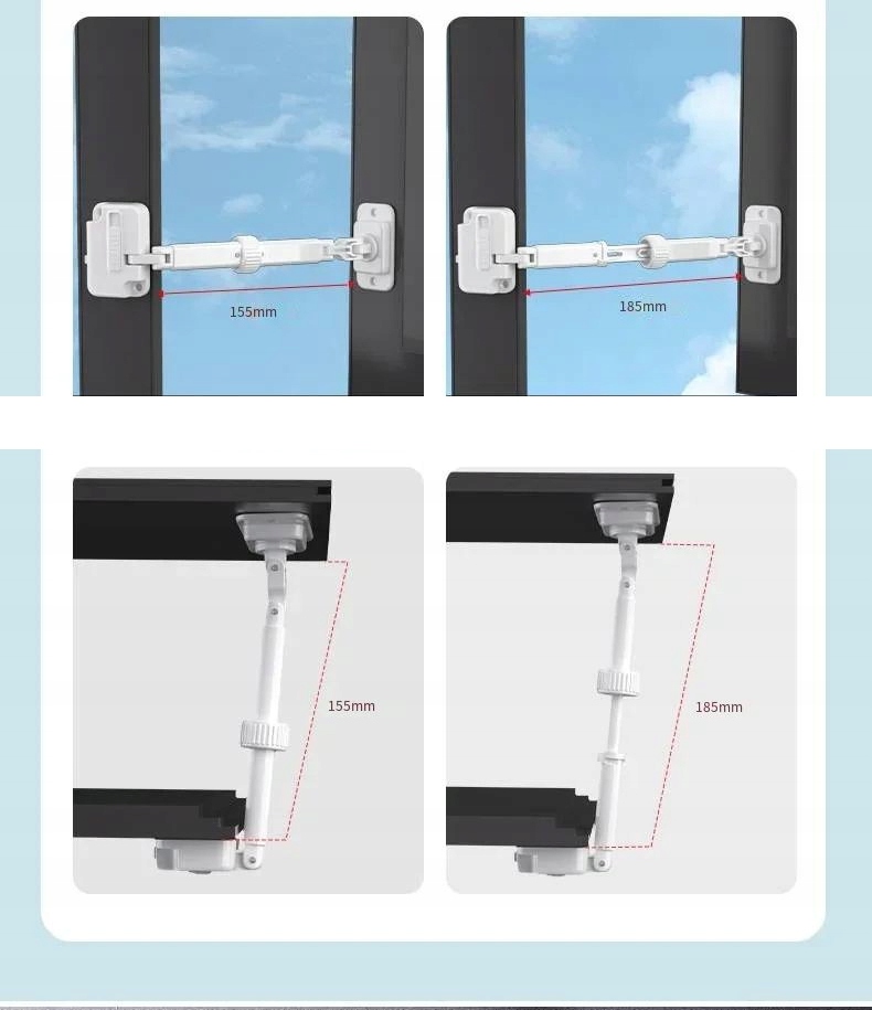 Posebna snemljiva zasnova omogoča enostavno spreminjanje položaja ključavnice, kar vam omogoča nastavitev stopnje odpiranja okna (130 mm in 160 mm).