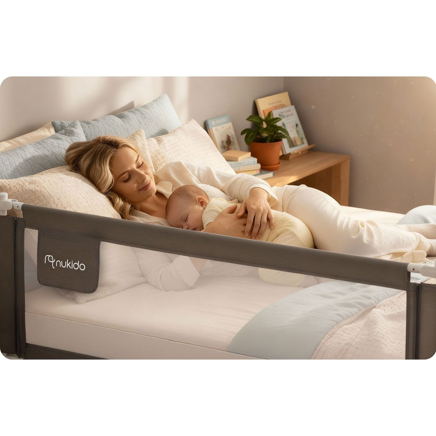 shumee Varnostna ograja za posteljo, varnostna vrata, ključavnica, 200 cm, Nukido NK-227, siva