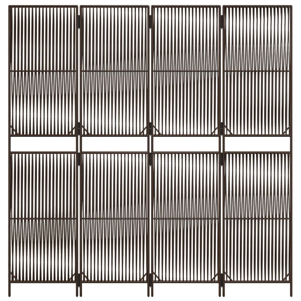 Vidaxl Pregrada za sobo 4 plošče rjav poli ratan