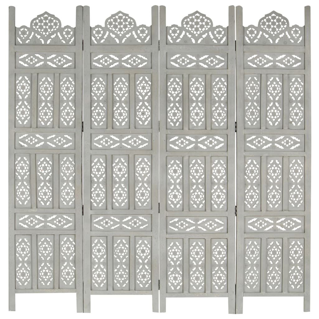 Vidaxl Ročno izrezljan paravan 4-delni siv 160x165 cm trden mangov les