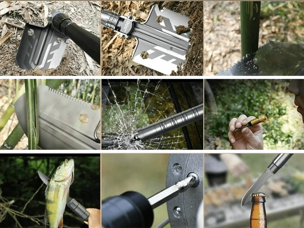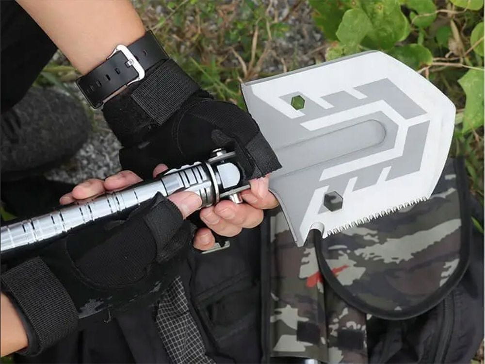 • Sekira: Ostrina robov omogoča uporabo kot sekiro.