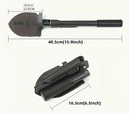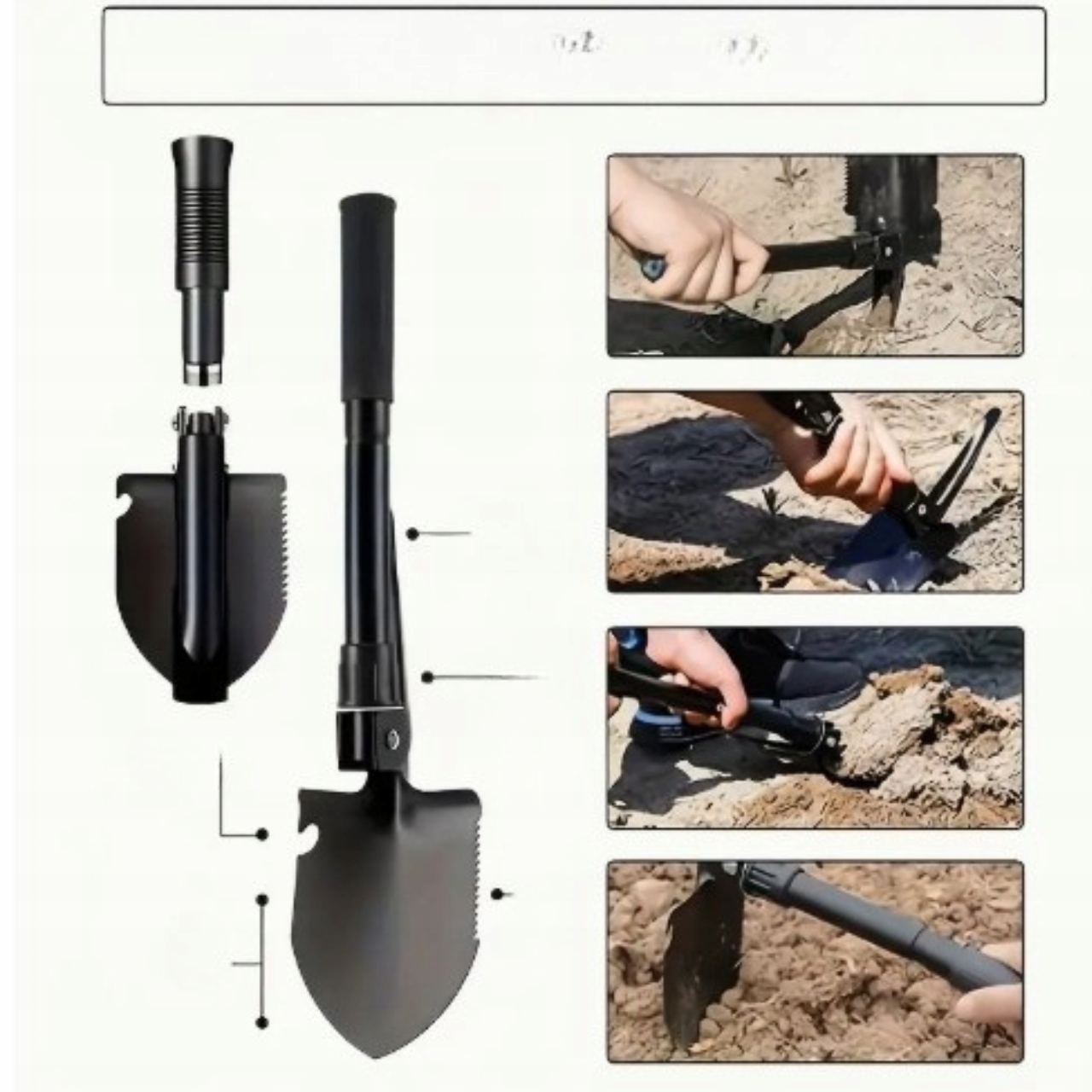 večnamenska lopatani samolopata, ampak tudikrampinžagavse v enem! Uporabljate ga lahko za kopanje lukenj, rezanje vej in celo delo na težkem terenu. Kompaktna oblikanaredi orodjeenostaven za shranjevanjein nosite v nahrbtniku ali torbi. Popoln za vsakogar, ki potrebujevsestransko pomočv situacijah preživetja.Popoln za odprave preživetja