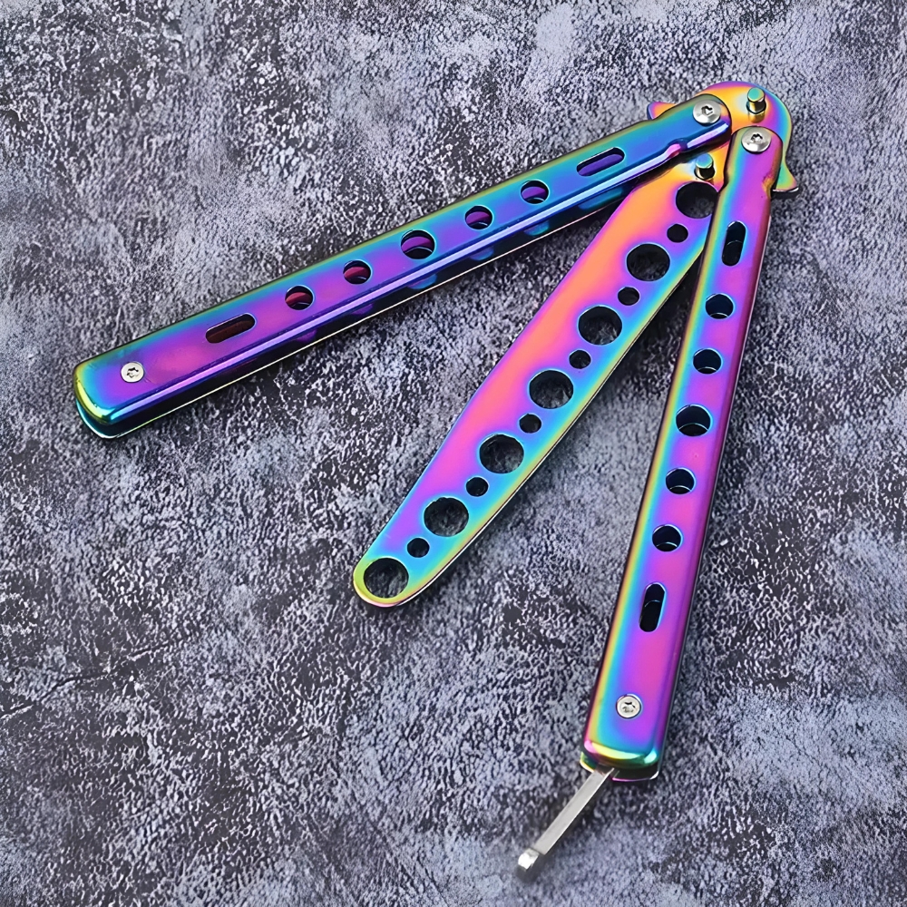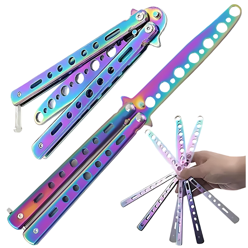 , kar zagotavlja varno vadbo. Osredotočite se na izpopolnjevanje svojih trikov brez skrbi zaradi poškodb! ✅ Začnite svojo pustolovščino z nožem metulj brez tveganja! ✅ Naš vadbeni nož metulj ni le orodje za vadbo, temveč ključ do odkrivanja sveta fascinantnih trikov.