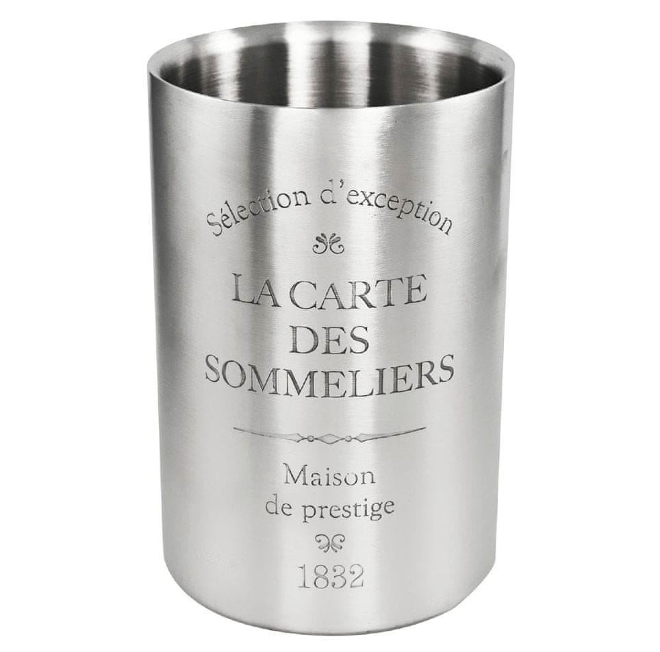 Ta čudovito oblikovan hladilnik za vino ali šampanjec je odlično darilo za podarjanje ali prejemanje. Seveda lahko slastno belo vino ali šampanjec uživate hladno. Hladilnik je izdelan iz nerjavnega jekla, je eleganten in praktičen ter primeren za steklenice vina s premerom do 10 cm.