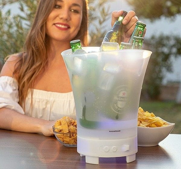 Ohladite pijačo in ustvarite nepozabno vzdušje z vgrajenimi LED lučkami in bluetooth zvočnikom. Celoten opis