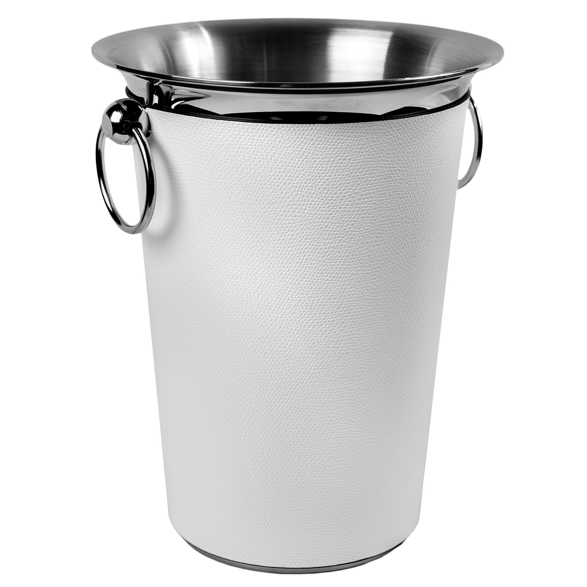 Jeklena hladilna posoda za šampanjec, prevlečena s telečjo kožo v prevleki Liverpool, ki je zelo odporna na vodo in praske. Celoten opis