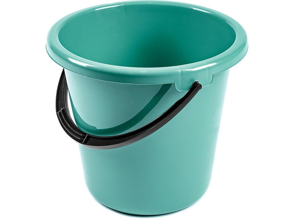 Plastično vedro z ročajem s prostornino 10 litrov, premerom 29 in višino 26 cm. Celoten opis