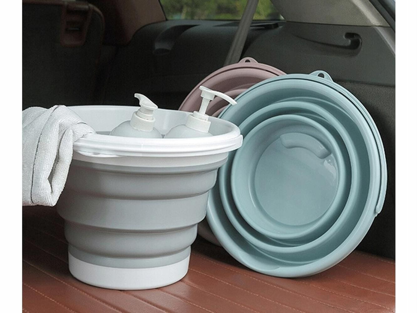 Zložljivo vedro s pokrovom je senzacionalna stvar, uporabna v vsakem domu. Narejen je bil iz trpežnega in debelega silikona, spodnji in zgornji del pa sta iz trpežne plastike.