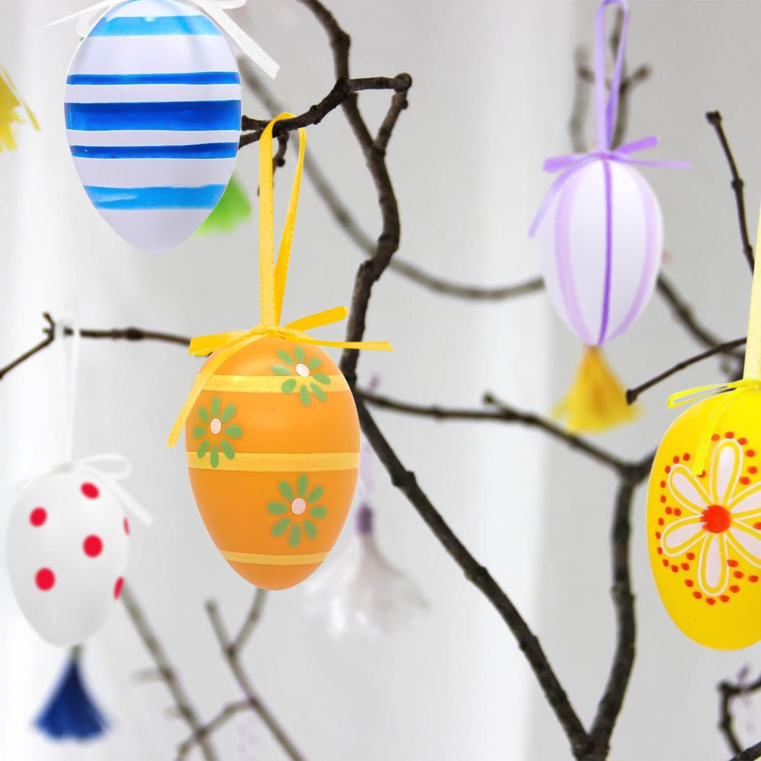 Vnesite veselo praznično vzdušje v svoj dom s kompletom 24 barvnih velikonočnih jajc znamke Aviski. Vsako jajce je bilo ročno poslikano v enem od 12 edinstvenih vzorcev – od pik do cvetličnih motivov – kar ustvarja živahno, izvrstno dekoracijo, ki pritegne pogled in doda čar vsaki postavitvi. Jajca so izdelana iz visokokakovostne plastike, so lahka, trpežna in za večkratno uporabo. Zahvaljujoč traku, nameščenemu na vrhu vsakega jajca, jih je mogoče enostavno obesiti na veje, venčke, okna, vrata ali na vrt.