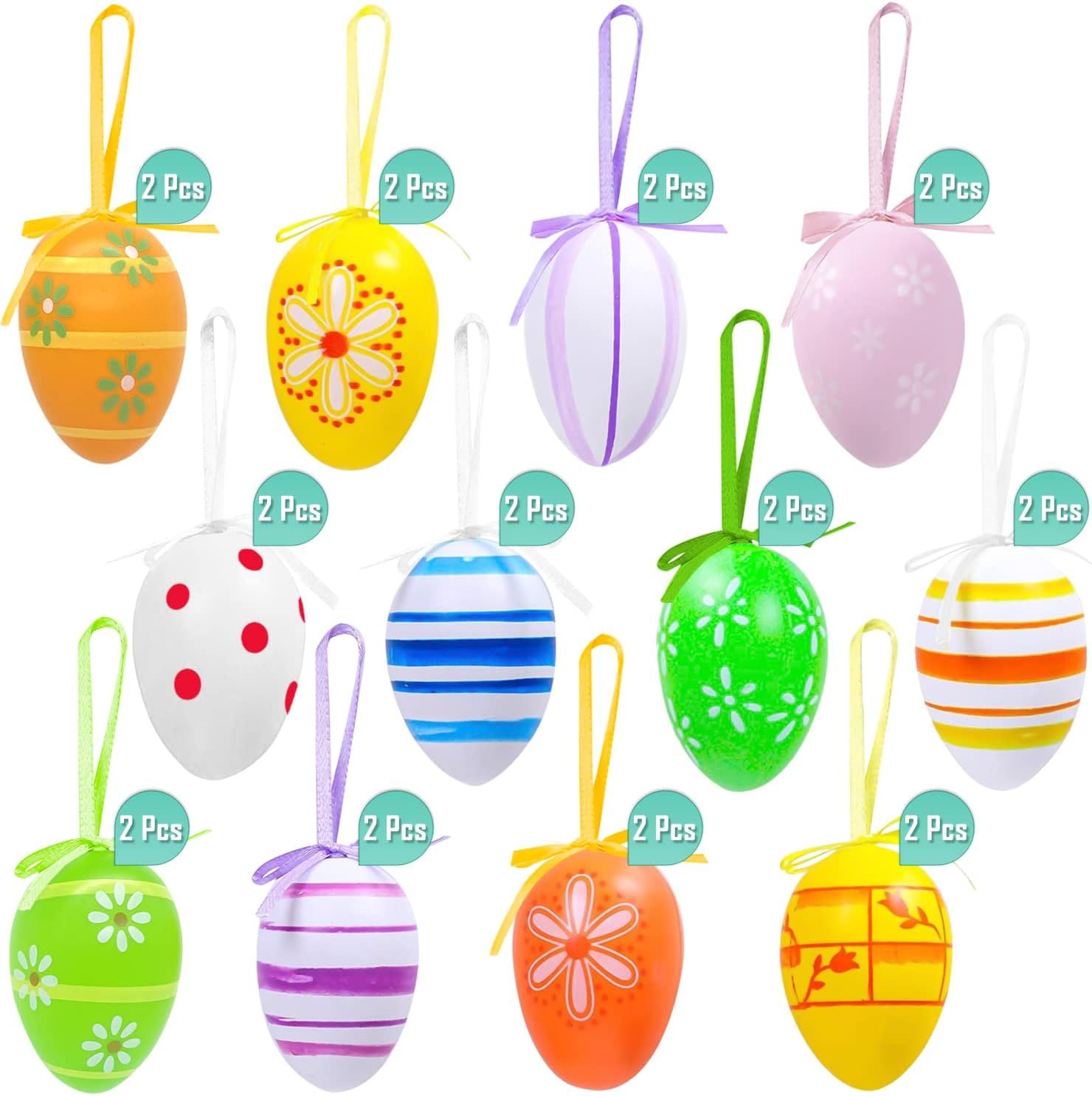 Nikcorp Velikonočna jajca za obešanje 24 kosov, ročno poslikane pisanice, večbarvni viseči okraski za velikonočno dekoracijo