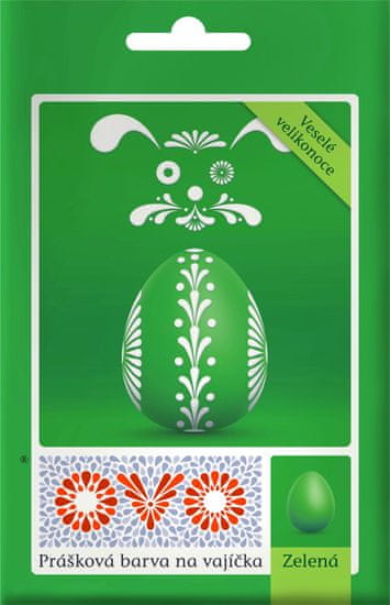 Prašna barva omogoča enostaven in hiter nanos drznih barv. Zasnovana za barvanje velikonočnih jajc. Barva: zelena.