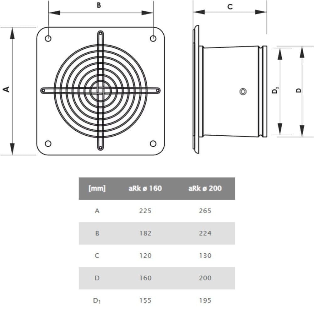 AKVAVENT aRk 200, Industrijski stenski ventilator fi 200 za manjše uporabne prostore