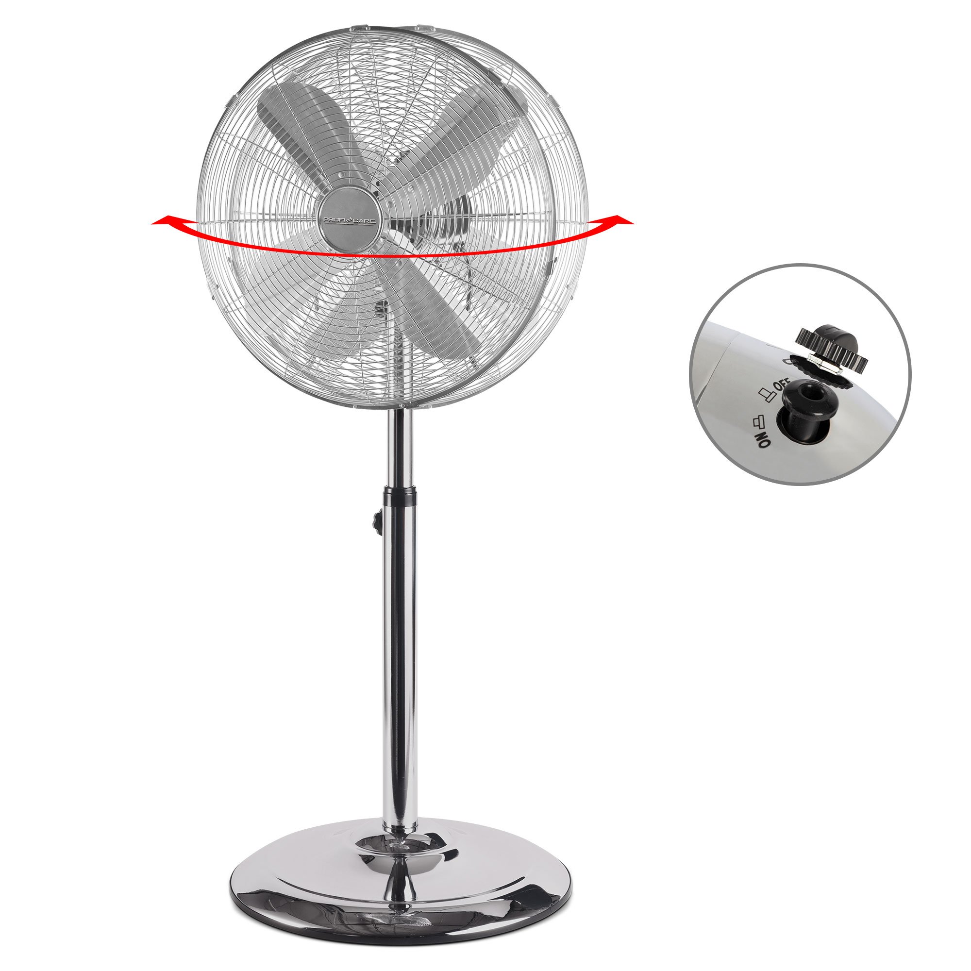 Stojanski ventilator VL 3064 MS je zaradi kakovostnega kovinskega ohišja in uporabe visokokakovostnih materialov zelo robusten. Ima funkcijo nihanja, ki jo je mogoče izklopiti. Hkrati ima možnost nastavitve višine in kota. Zaščitna rešetka, podstavek in pokrov motorja so izdelani iz kovine. Zaradi š Celoten opis