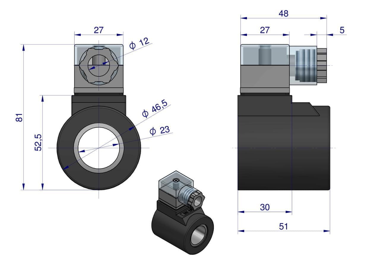 Tuljava za razdelilnik (magnetni ventil CETOP 3 NG6) 50L 12V VOIMA Celoten opis