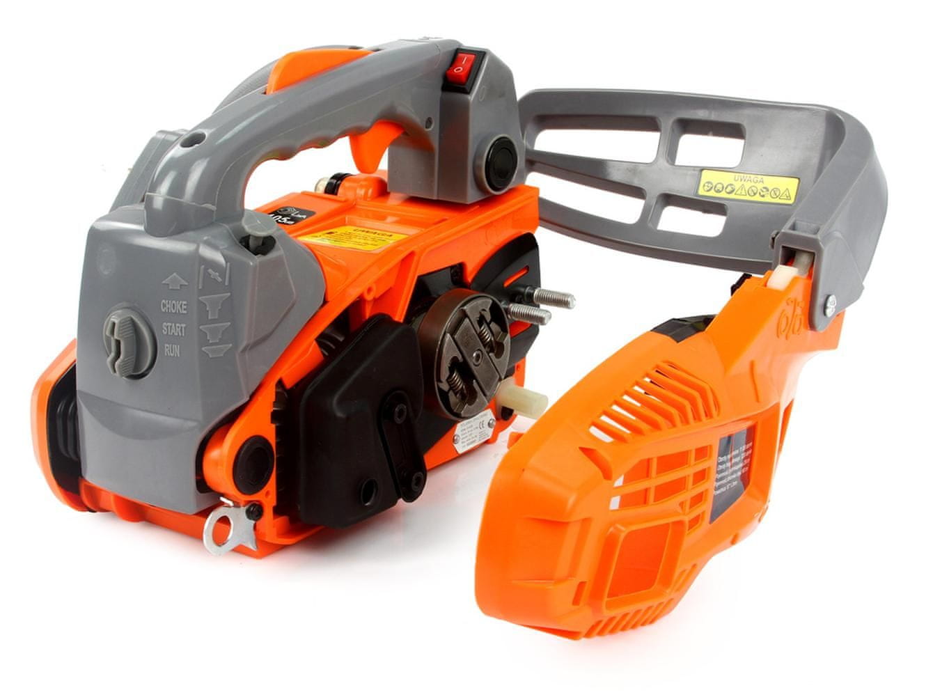 Žaga je opremljena s posebnim ščitnikom za roke in ročajem , ki omogoča obešanje na pas.