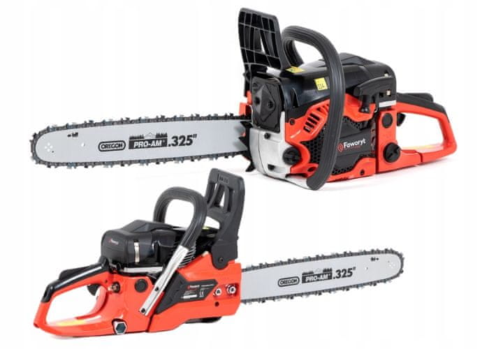 Bencinska motorna žaga z močjo 1600 W in dolžino 40 cm. Učinkovita bencinska motorna žaga. Ta ekonomična bencinska motorna žaga znamke Faworyt je odlična za čiščenje okoli hiše. Je lahka in enostavna za uporabo. Ta žaga omogoča enostavno in učinkovito obrezovanje drevesnih debel in različnih vej. Naprava je primerna tako za profesionalno kot domačo uporabo. Enostavna za uporabo. Ta motorna žaga vam omogoča hitro in enostavno opravljanje različnih opravil na vašem vrtu – žaganje drv, obrezovanje dreves ali vzdrževanje žive meje. Visoka moč motorja in visoka največja hitrost vam omogočata učinkovito opravljanje različnih opravil. Bencinska motorna žaga Faworyt je udobna in varna za uporabo, hkrati pa izjemno vzdržljiva. Prednosti izdelka: Naprava je opremljena z zanesljivo verigo. Dvotaktni motor ima prostornino 45 cm3. Žaga tehta le 5 kg. Ergonomski ročaj z dušilcem vibracij. Žaga ima enostaven dostop do zračnega filtra, kar omogoča redno čiščenje in vzdrževanje. Samodejna zavora verige in samodejno mazanje verige. Zamenjava verige je enostavna. Veriga je debela 1,47 mm. Dodatna prednost je, da za zamenjavo ni potrebno dodatno orodje. Poleg tega ima žaga samodejno zavoro verige in samodejno mazanje verige. Parametri: Prostornina motorja: 45 cm3 Model motorja in moč: 1E43F –1; 1,7 kW Največji navor motorja: 2,0 Nm 6500 vrt/min Dolžina meča: 16 ””, 40 cm Dolžina reza meča: 39 cm Korak verige: (0,325”), 8,255 mm Debelina verige: 0,58” 1,47 mm Število pogonskih členov: 66 Hitrost prostega teka: 3000 +/- 400 vrt/min Največja hitrost: 12000 vrt/min Največja hitrost verige: 23,114 m/s Prostornina rezervoarja za gorivo: 600 ml Prostornina rezervoarja za olje: 260 ml Funkcija proti vibracijam: da Zobje verižnika: 7 zob x 8,255 mm Zavora verige: da Sklopka: da Samodejno mazanje verige: da Veriga z majhnim povratnim udarcem: da Neto teža brez verige in meča: 5 kg Največja poraba goriva: pribl. 4 6 0 g/kWh Gorivo: mešanica neosvinčenega bencina in 2T olja v razmerju 40:1 Verižno olje: Posebno olje za mazanje verige Raven zvočnega tlaka: LpA 97,5 dB(A) A), k = 3 dB( Zagotovljena raven zvočne moči: L WA 114 dB(A) Izmerjena raven zvočne moči: L WA 11,1 dB(A) k = 3 dB(A) Vibracije ahv: (sprednji ročaj): maks. 687 m/s², k = 1,5 m/s² Vibracije ahv: (zadnji ročaj): maks. 8,39 m/s², k = 1,5 m/s² Vrsta verige: Oregon 21BPX066X Vrsta meča: Oregon 168PXBK095 Svečka: L7RTC/TORCH, RCJ7Y/CHAMPION, BOSCH L8RTF, DENSO W22MPR, NGK BPMR7A Cena velja za 1 kos
